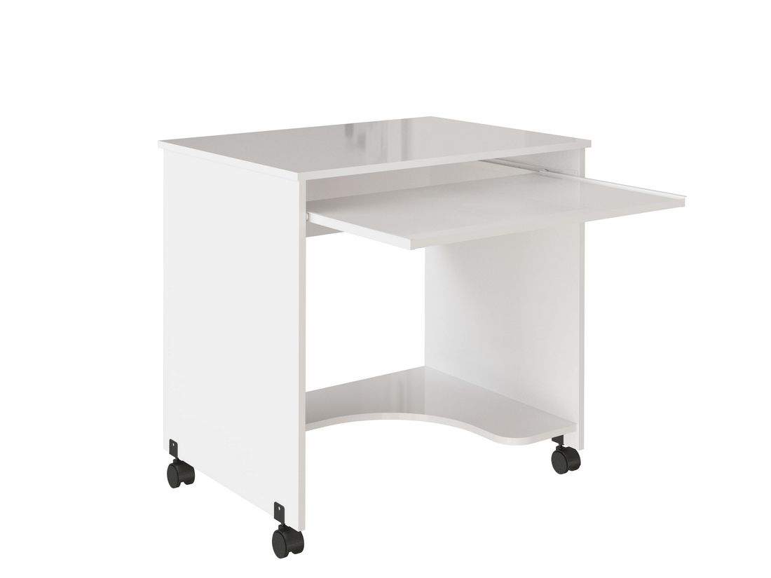 Стол компьютерный Бест - это современный, небольшой стол для Вашего кабинета. Благодаря своим компактным размерам стол не занимает много места и с легкостью вписывается в любой интерьер. Стол оборудован выдвижной панелью для клавиатуры и нижней полкой, он установлен на колеса, поэтому легко переставляется в нужное место. Замечательный небольшой компьютерный стол Бест будет служить Вам долгое время. Изготовлен из качественнызх материалов.