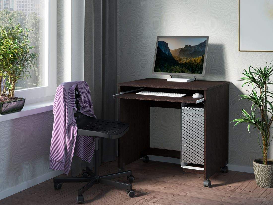 Стол компьютерный Бест - это современный, небольшой стол для Вашего кабинета. Благодаря своим компактным размерам стол не занимает много места и с легкостью вписывается в любой интерьер. Стол оборудован выдвижной панелью для клавиатуры и нижней полкой, он установлен на колеса, поэтому легко передвигается в нужное место. Замечательный небольшой компьютерный стол Бест будет служить Вам долгое время. Изготовлен из качественнызх материалов.