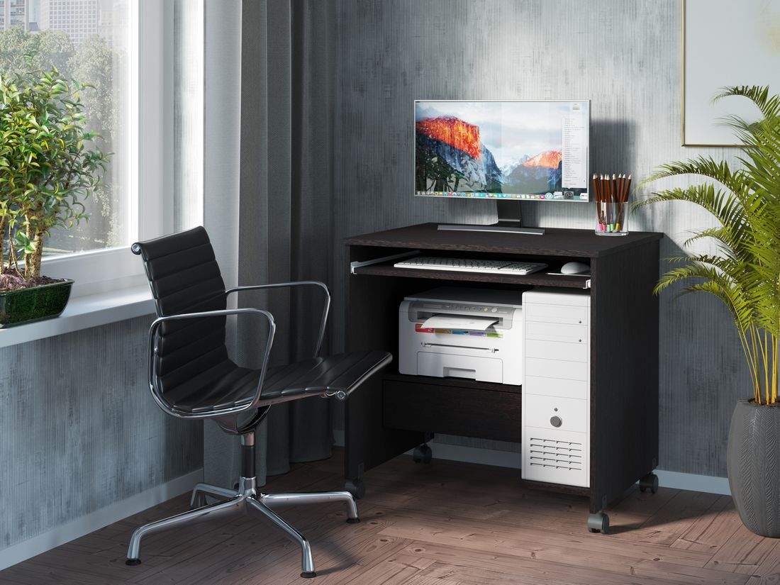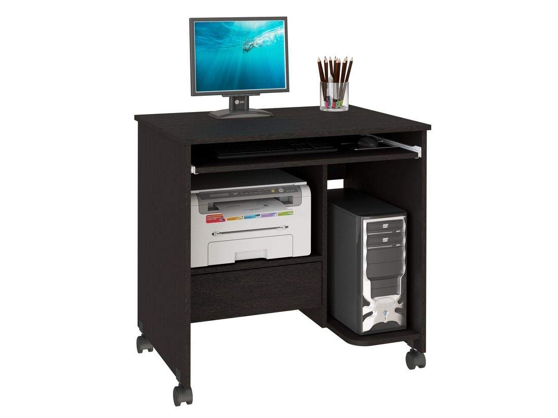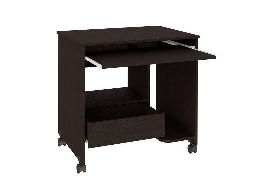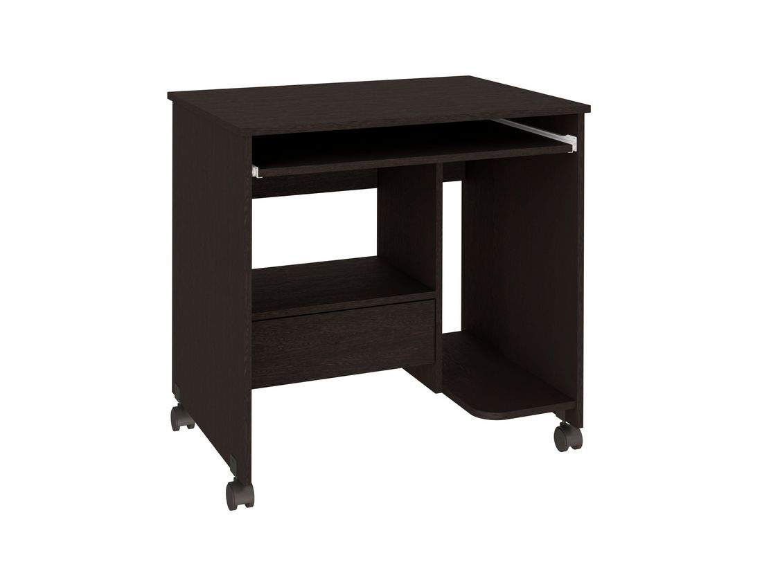 Стол компьютерный Нью - это современный, небольшой стол для Вашего кабинета. Благодаря своим компактным размерам стол не занимает много места и с легкостью вписывается в любой интерьер. Стол оборудован выдвижной панелью для клавиатуры, полкой под системный блок, ящиком для письменных принадлежностей. Установлен на колеса, поэтому легко передвигается в нужное место. Замечательный небольшой компьютерный стол Нью будет служить Вам долгое время. Изготовлен из качественнызх материалов.