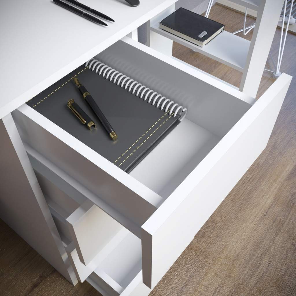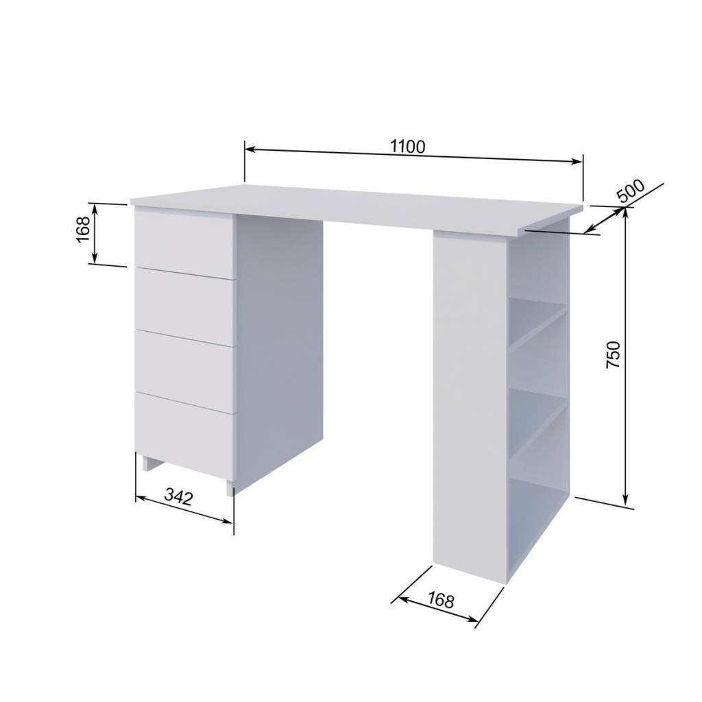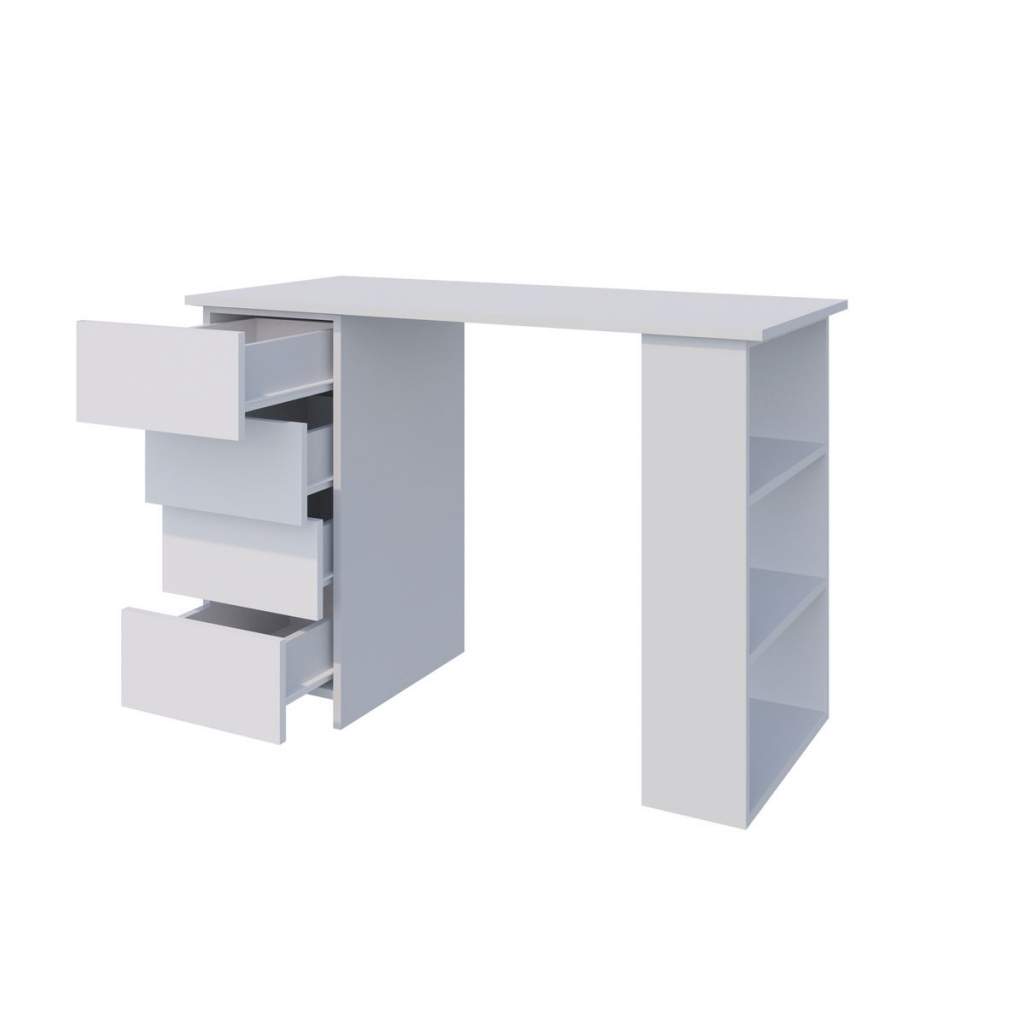 Стол письменный Бруно - это функциональный, современный компьютерный стол, который подойдет для любой комнаты. Его можно поставить в детскую комнату и использовать, как рабочий стол для ребенка, он отлично подойдет для рабочего кабинета, как компьютерный стол для работы, в спальне его можно использовать, как туалетный столик, если добавить к нему зеркало. Данный стол оборудован четырьмя выдвижными, вместительными ящиками на роликовых составляющих, которые подходят для хранения документов, различных письменных принадлежностей. С права расположены открытые полки для различных необходимых вещей. Универсальный Стол письменный Бруно подходит как для дома, так и для офиса. Изготовлен из качественного ЛДСП.